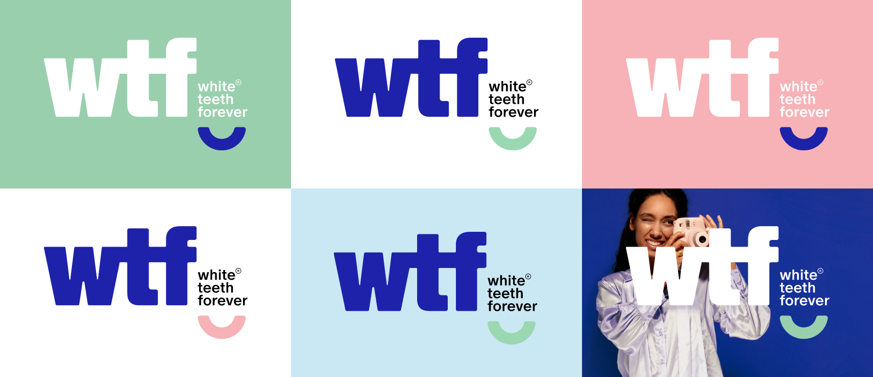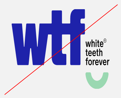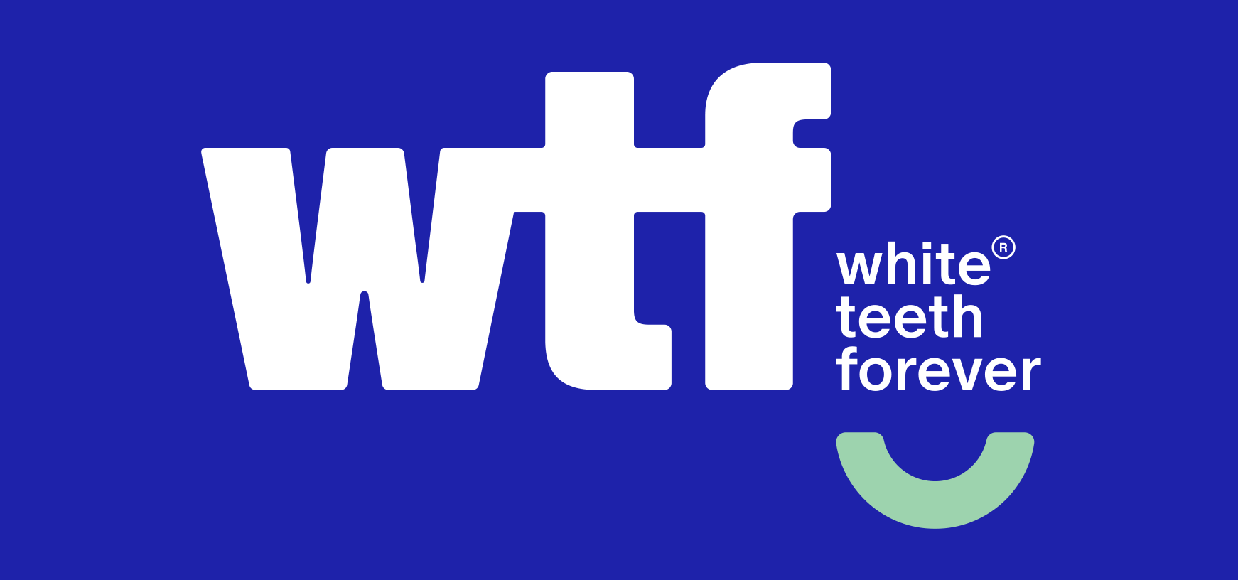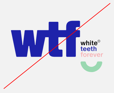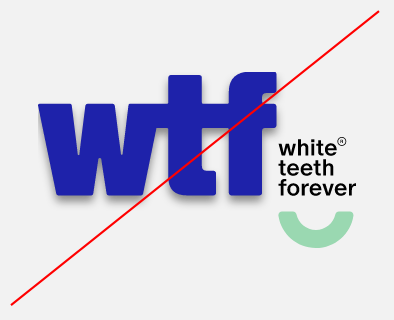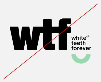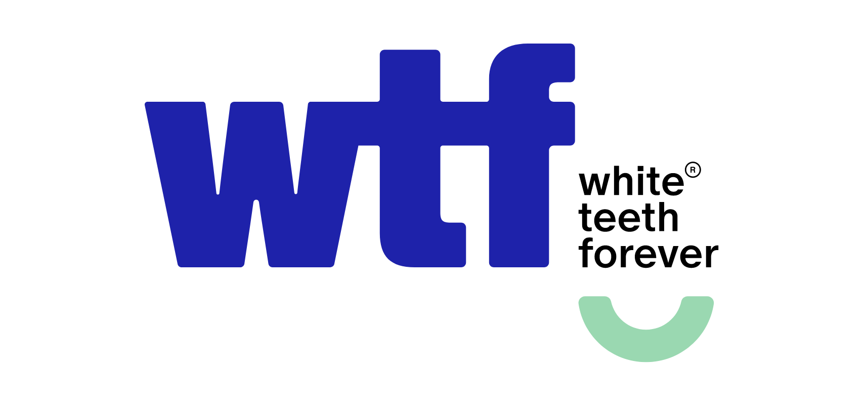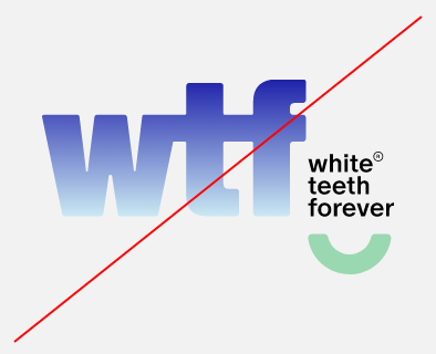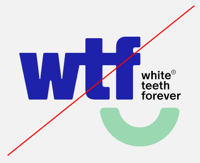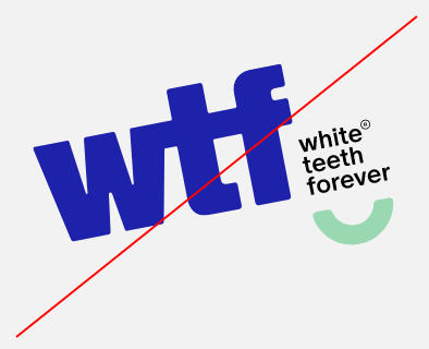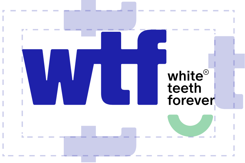 Our logo, featuring the bold abbreviation “WTF” for “White Teeth Forever,” is the key element of our brand. The smile shape highlights dental focus, while the strong, capitalized letters convey confidence and trustworthiness.