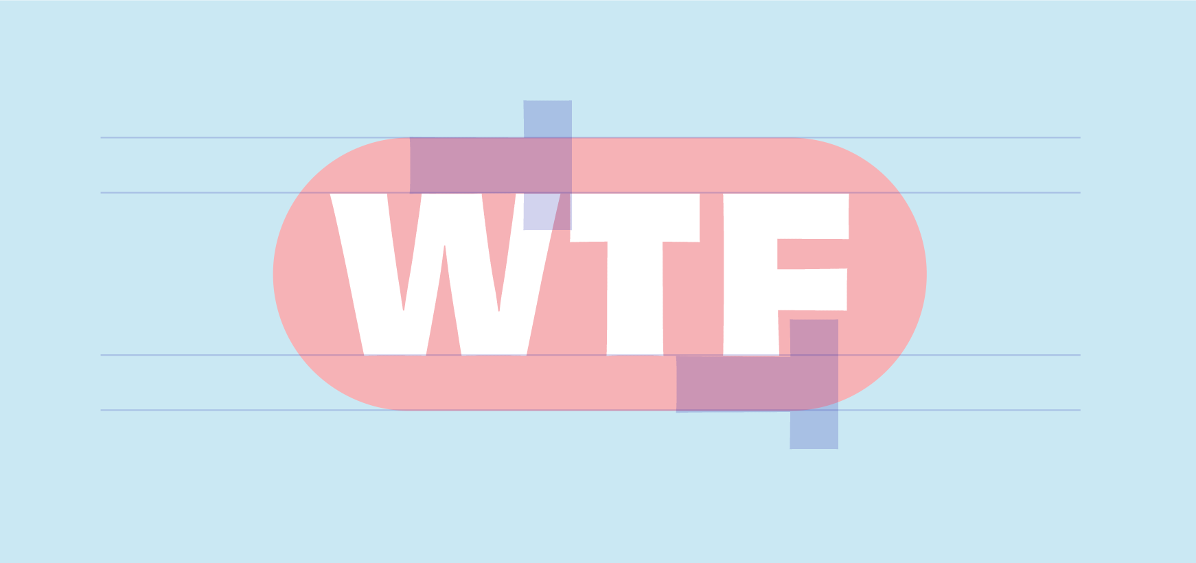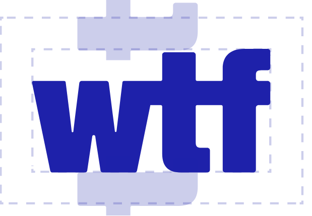 WTF is always written in capitals. The background is a rectangle in one of the brand colors with rounded corners.